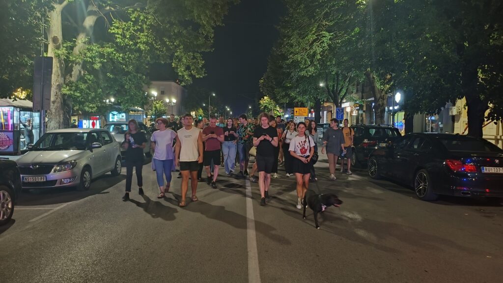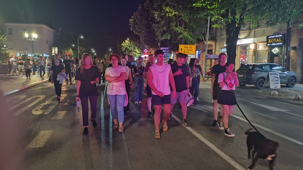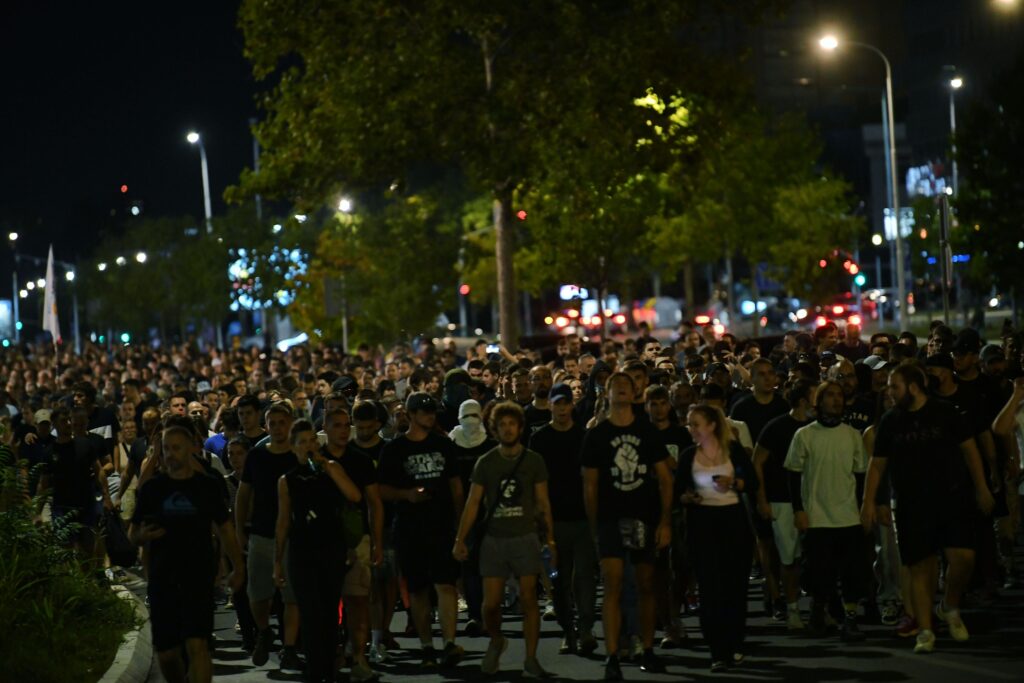 Nakon toga krenuli su u protestnu šetnju do prostorija SNS-a, koje kao i prethodnih večeri obezbeđuje uniformisana policija, javlja N1.