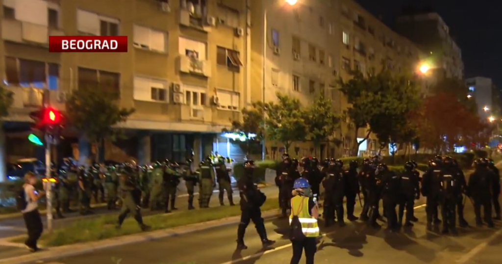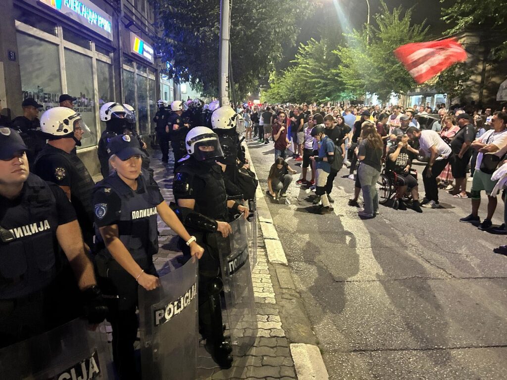Pripadnici žandarmerije potisnuli su građane iz Cvijićeve ulice gde su razlupane prostorije SNS-a. U toku je intervencija žandarmerije, koja na oklopnim vozilima ide za građanima.