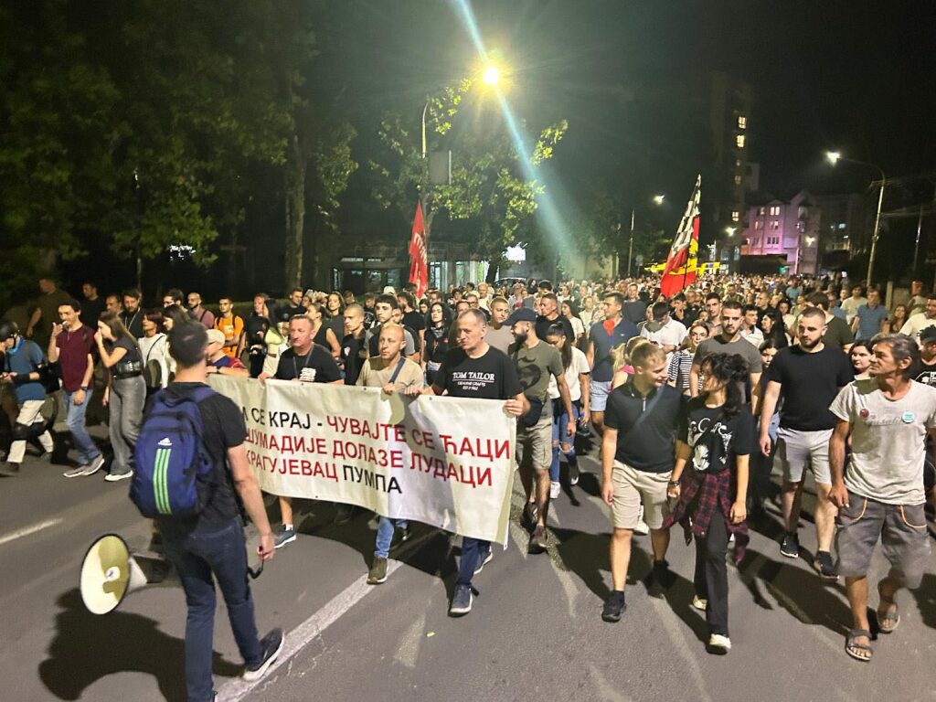 U Kragujevcu je kolona građana duža od jednog kilometra nakon dvočasovne šetnje stigla do prostorija Srpske napredne stranke (SNS) koje su zaključane, a na izlozima su spuštene metalne roletne, gde ih je sačekao kordon policije, ali nije bilo potrebe za njihovim angažovanjem.