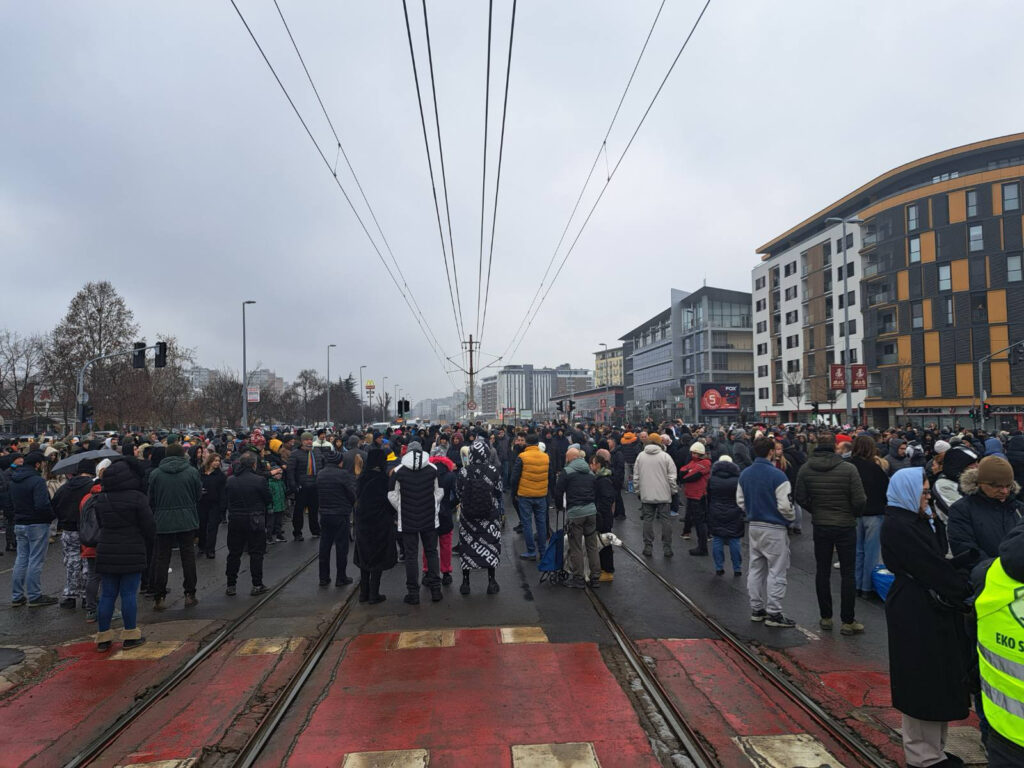 Građani su se okupili i u Beogradu. Na ulglu ulica Jurija Gagarina i Gandijeve na Novom Beogradu gde su na 15 minuta u tišini blokirali raskrsnicu.