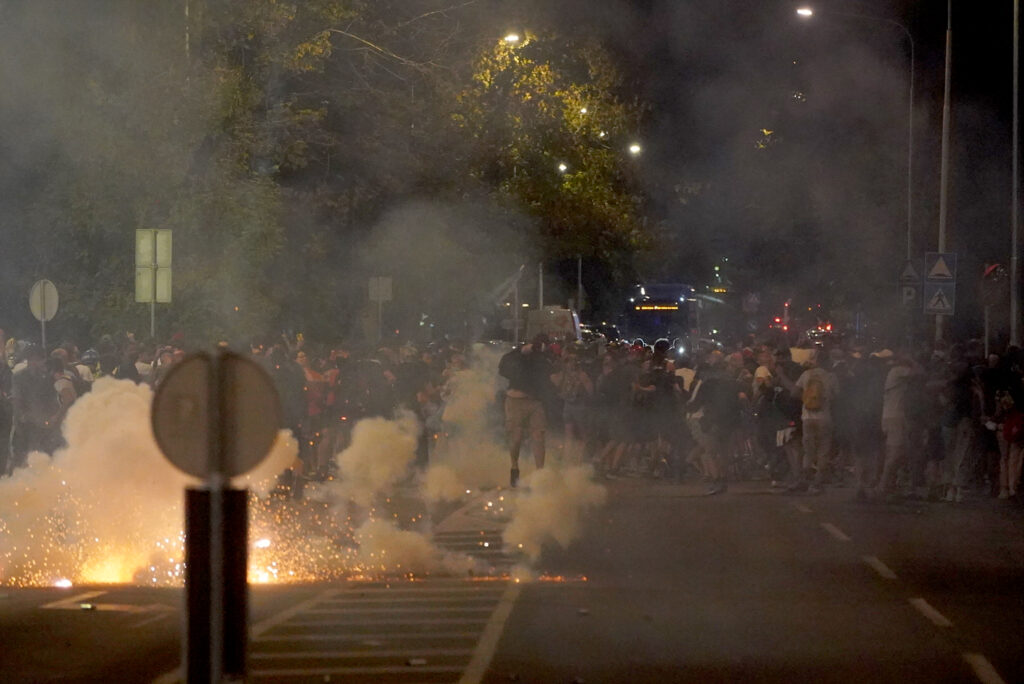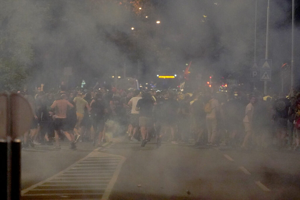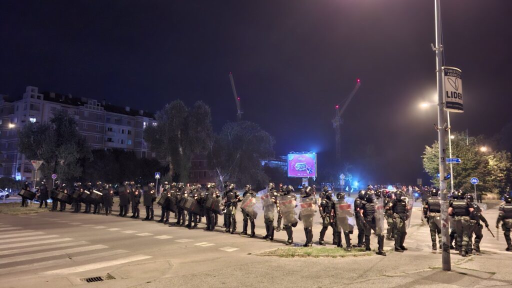 Građani su ih gađali pirotehničkim sredstvima, policija je uzvratila, a u velikom broju su s epojavili pripadnici u opremi za razbijanje demonstracija.