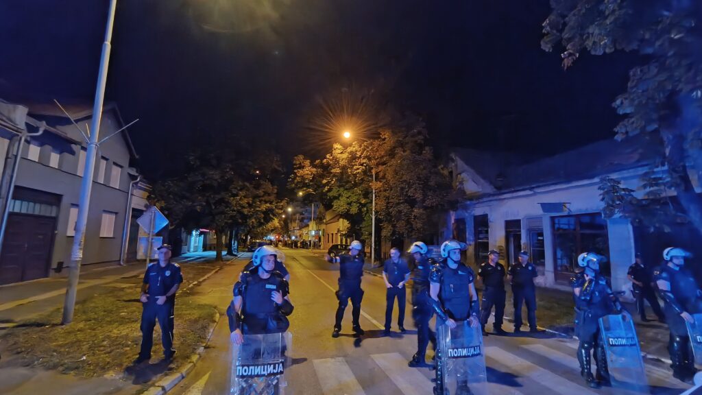 Kod Ulice Palmira Toljatija došle su jake policijske snage, i najmanje dva oklopna vozilo Žandarmerije u punoj opremi, a čiji se eksplozije petardi i topovskih udara.