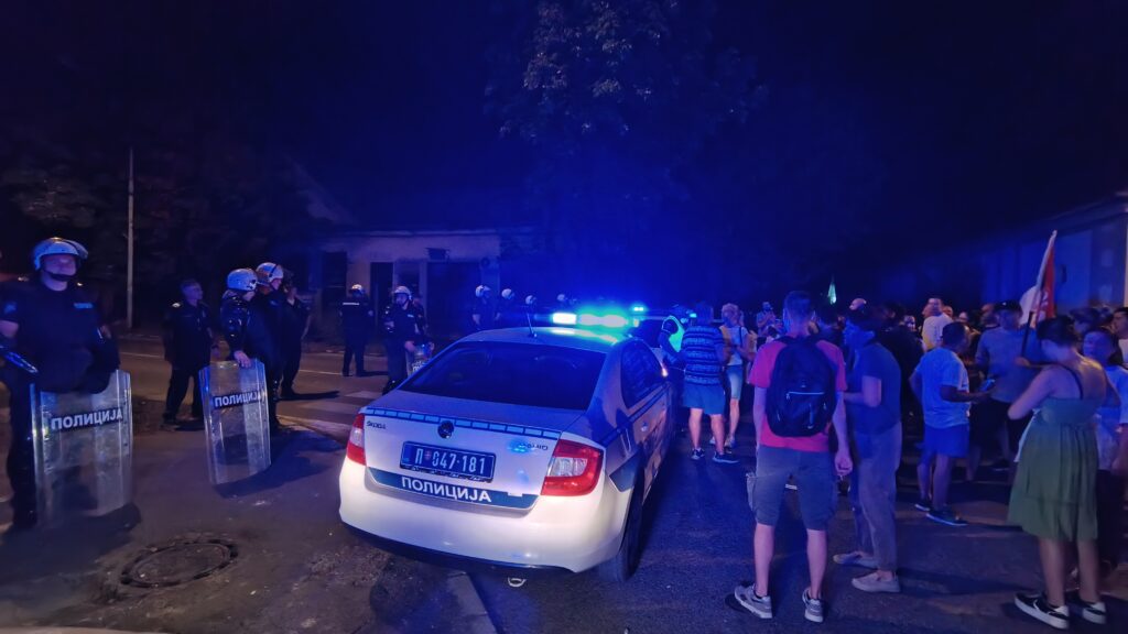 Policija je večeras oko 22:30 intervenisala u Novom Beogradu i ispalila suzavac rasterujući okupljene demonstrante koji su se okupili na raskrsnici ulica Bulevar maršala Tolbuhina i Bulevar Mihajla Pupina.