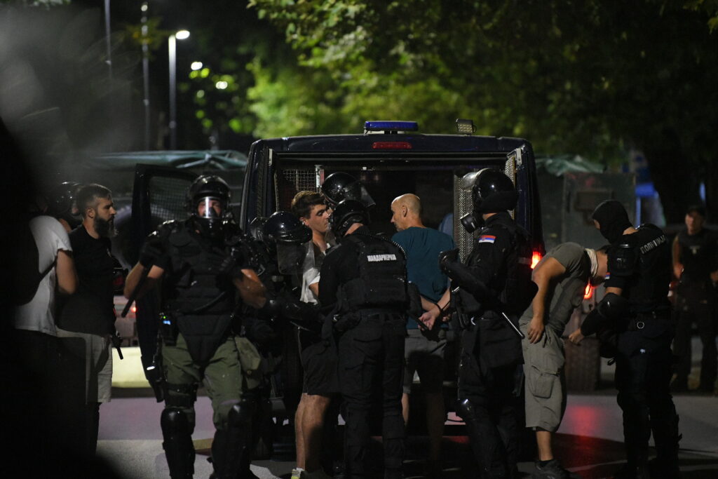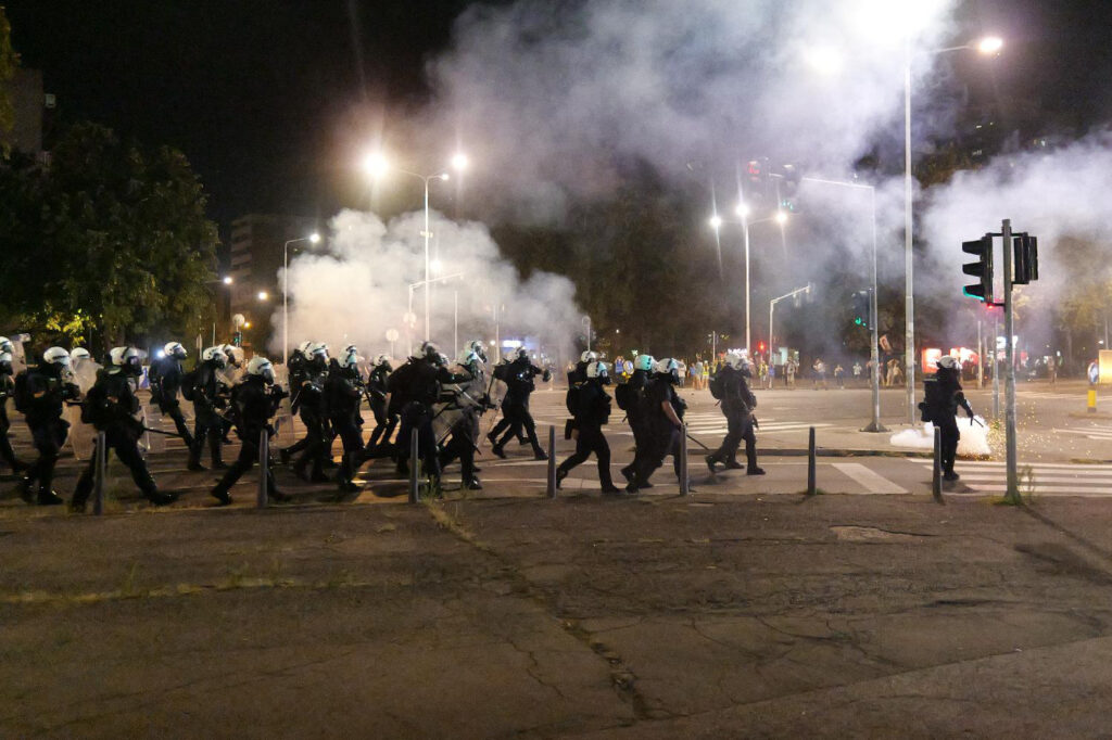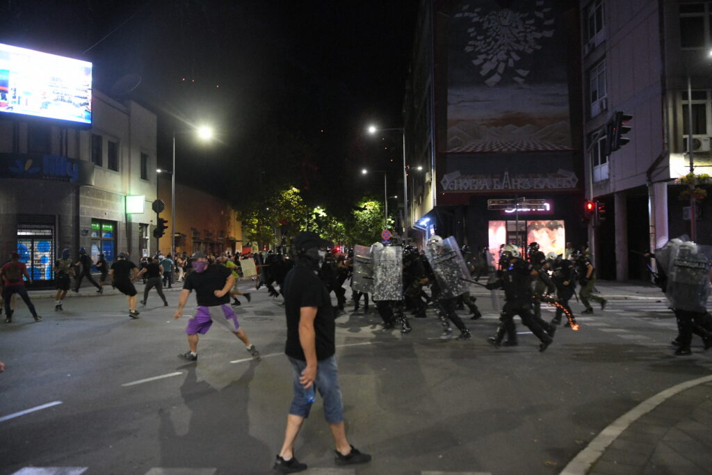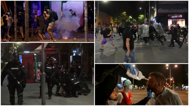 Pripadnici policije i žandarmerije intervenisali su na više lokacija, ispaljivali suzavac, potiskivali demonstrante koji su koristili pirotehniku i baklje.
