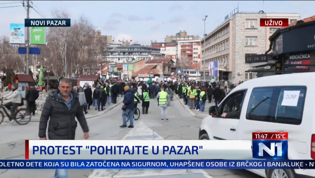 Studenti koji drže u blokadi Državni univerzitet u Novom Pazaru, kao i žitelji ovog grada, organizuju danas veliki protest u tom gradu, prenosi N1. Student Državnog univerziteta u Novom Pazaru, Amar Ličina kaže da se danas očekuje veliki protest studenata i građana u Novom Pazaru.