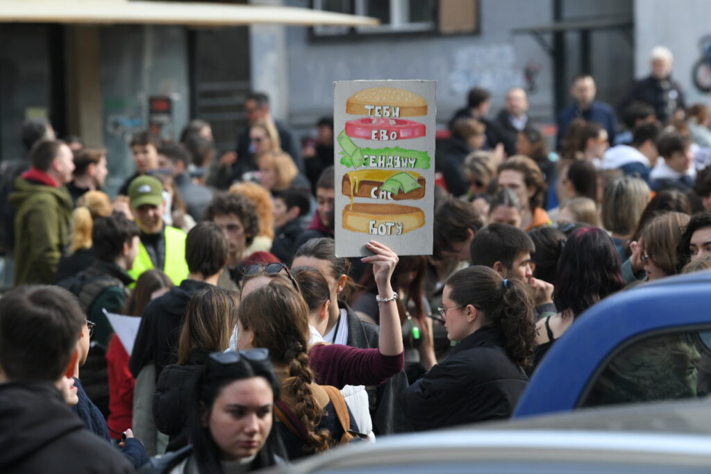 Nakon što su studenti primili blagoslov u crkvi Lazarici krenuli su u šetnju ka Nišu. Kako javlja reporterka Danasa, u dvorištu crkve građani su izneli hranu, posluženje i piće.