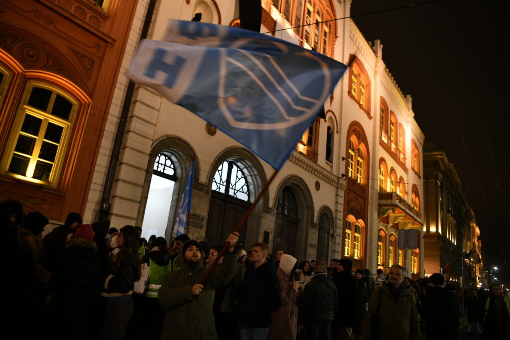 Studenti su od Pravnog fakulteta krenuli nazad ka Rektoratu, a građani u Bulevaru kralja Aleksandra im daju podršku.