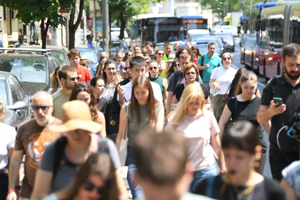 U Parku Milutina Milankovića okupljaju se studenti Medicinskog fakulteta, koji će zajedno sa lekarima krenuti ka sudu u Katanićevoj.
