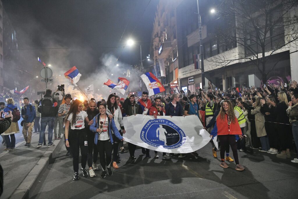 U centru Beograda neverovatna atmosfera na dočeku studenata. Građani apalaudiraju, skandiraju, mnogi od njih i plaču.