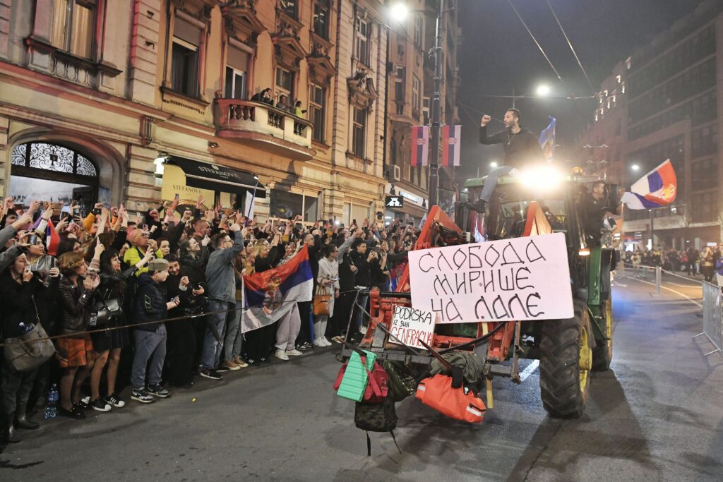 Nakon studenata sa Slavije ka Trgu republike krenuli su traktori. Pre nekoliko dana im nije bilo dozvoljeno da pređu Brankov most, ali sada su zajedno sa studentima došli u centar grada. Kako je javio N1, oni će biti stacionirani kod Bogoslovije, gde će sačekati sutrašnji protest, kada bi trebalo da budu zaštita studentima tokom sutrašnjeg dana.