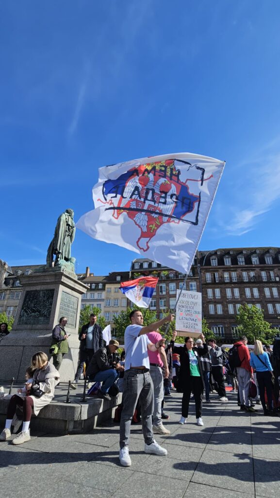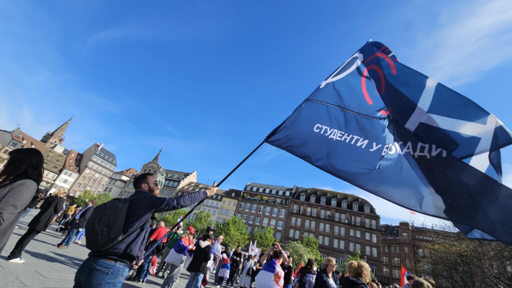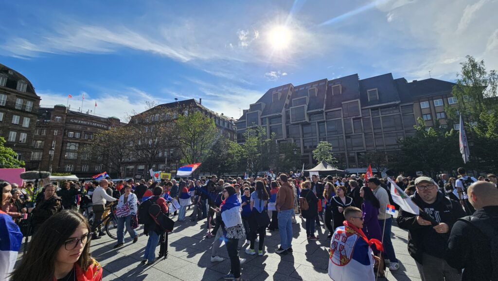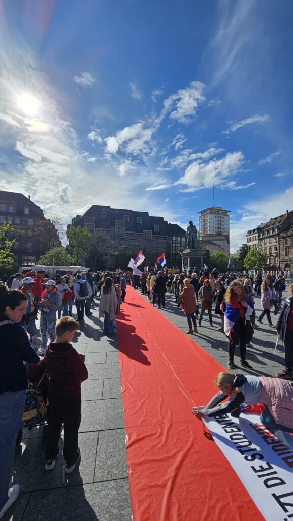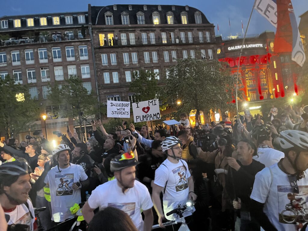Sve više građana Francuske, ali i Nemačke, pretežno poreklom iz Srbije, okuplja se na trgu u Strazburu, gde bi trebalo da dočeka grupu od 80 studentata iz Srbije koji su prethodnih dana biciklima prešli oko 1400 kilometara da bi evropske institucije, ali i evropsku javnost upoznali sa razlozima svog protesta koji traje mesecima i sa tim kako vlast ignoriše njihove zahteve i upotrebljava represiju i na akademsku zajednicu, ali i na građane koji su kritični prema vlasti.