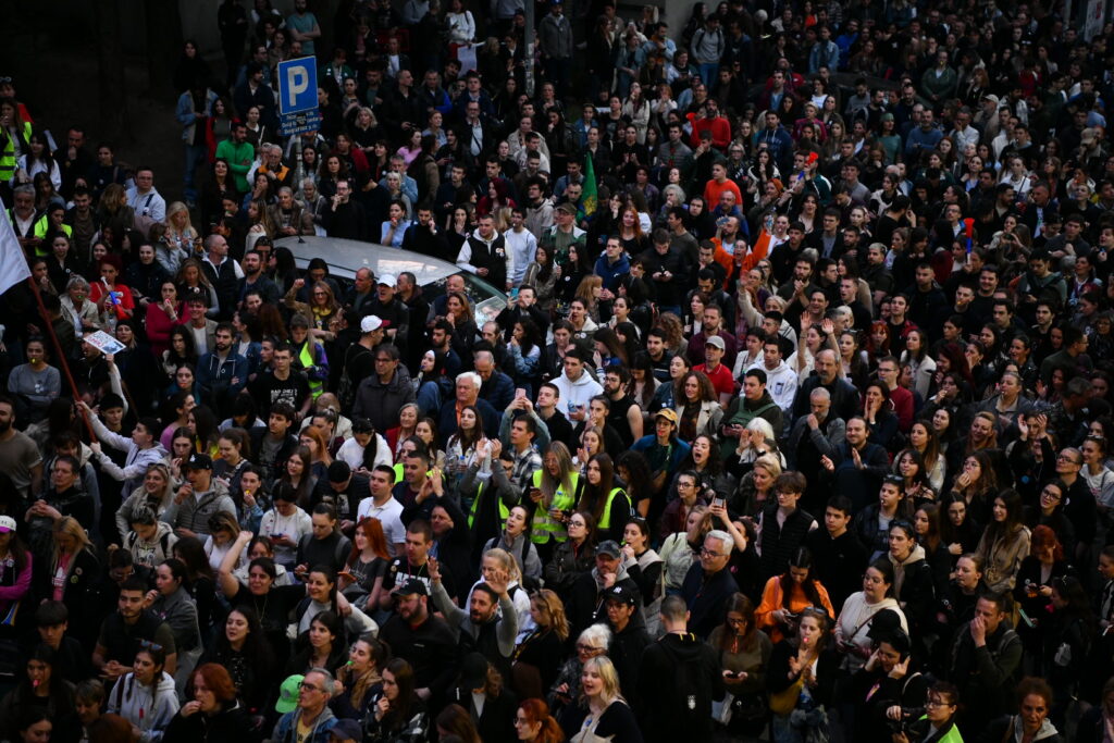 Studenti i građani prave konstantnu buku pištaljkama i vuvuzelama.