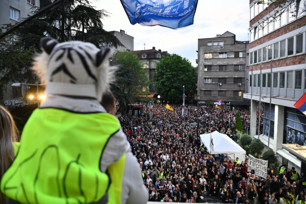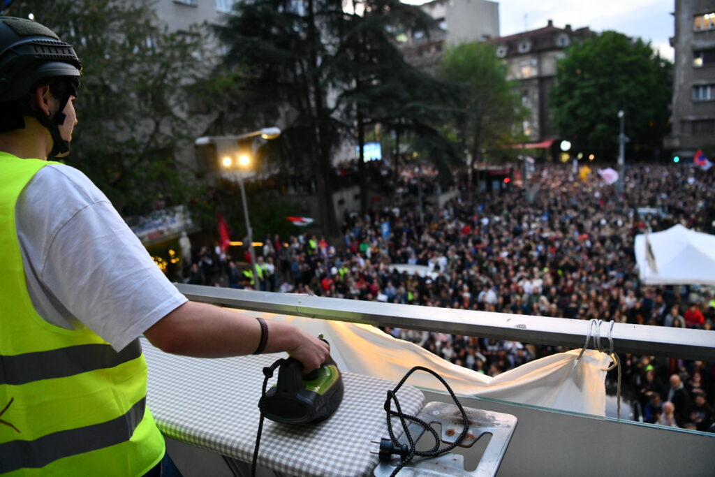 Studentska blokada ispred zgrada Radio-televizije Srbije u Takovskoj i na Košutnjaku uzlazi u 20 sat i protest prolazi u mirnoj, ali bučnoj atmosferi.