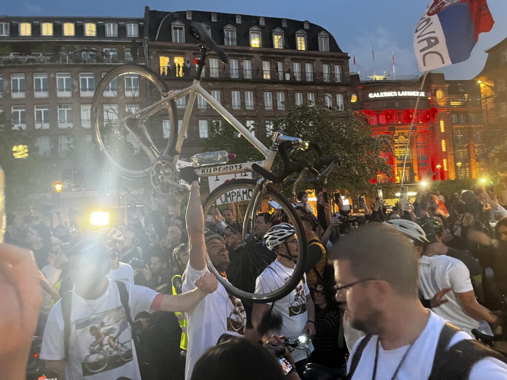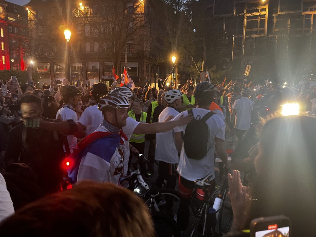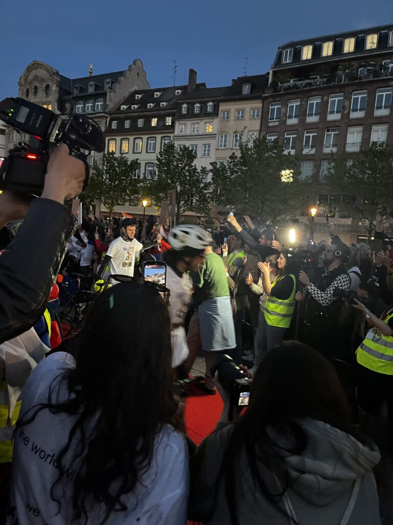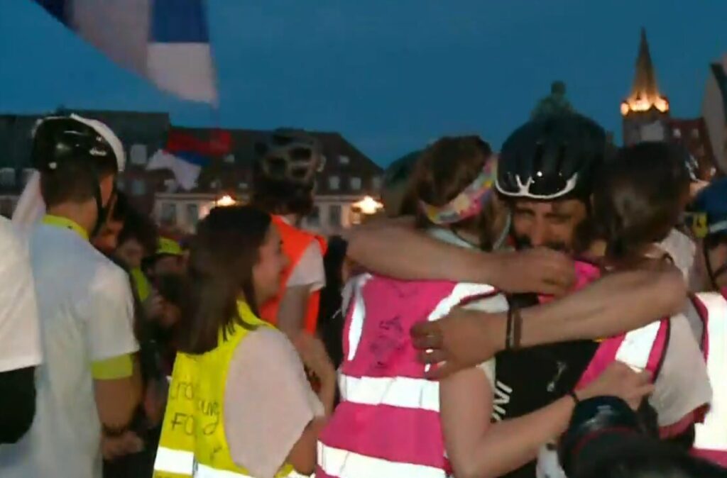 Veliki broj građana okupljenih na trgu Kleber u Strazburu dočekao je bicikliste iz Srbije.