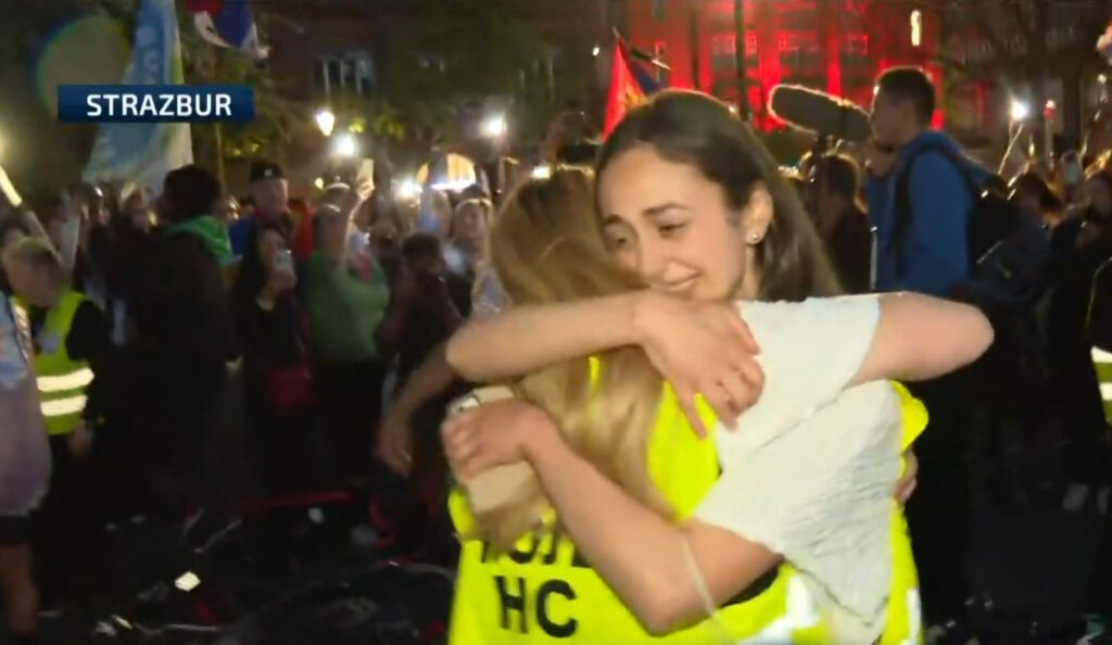 Na dočeku studenata koji su krenuli iz Srbije za Strazbur, nalazi se i novinar Nemanja Šarović.