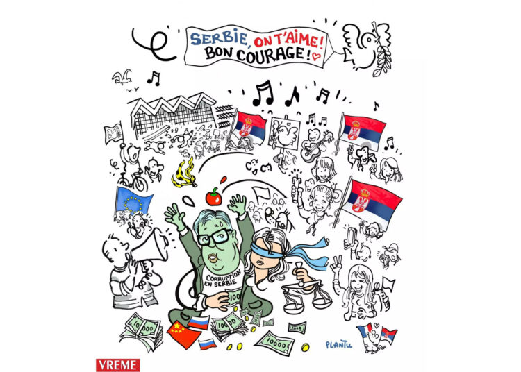 Karikaturu koju je objavio Vreme, nacrtao je čuveni francuski karikaturista Žan Planturø, poznatiji kao Plantu, kao izraz solidarnosti i podrška studentima u Srbiji.