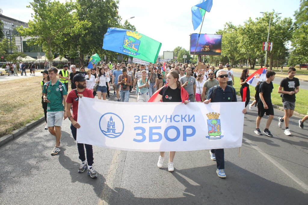 Kao što je najavljeno skupu su se pridružili zborovi građana iz Beograda, koji su nakon okupljanja kod Ušća, preko Gazele krenuli ka Slaviji.