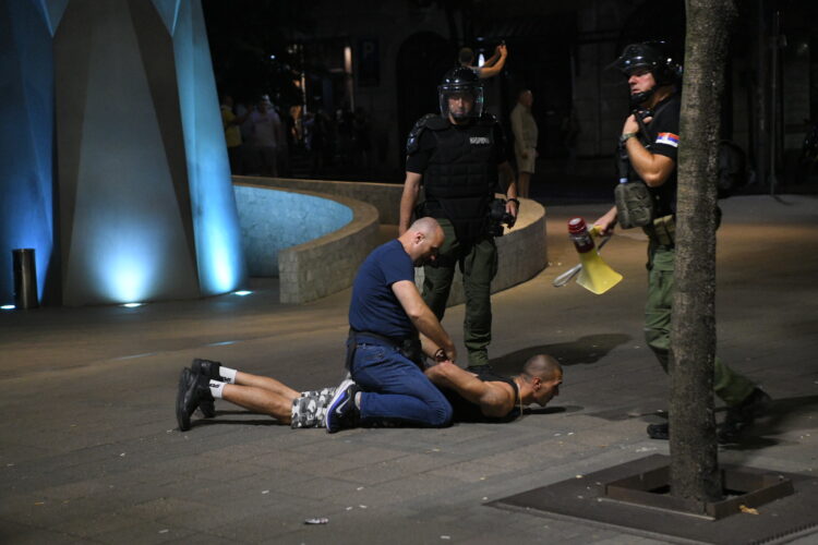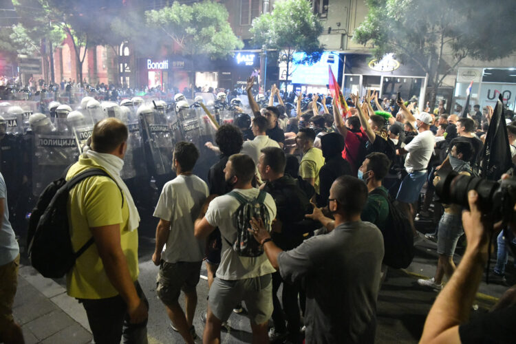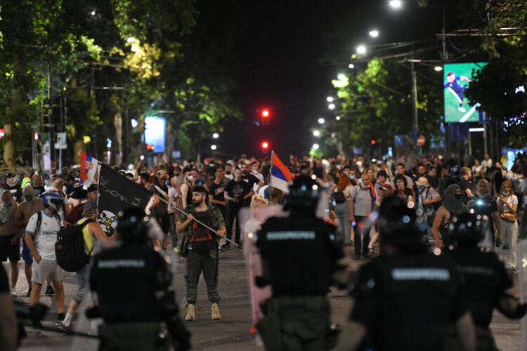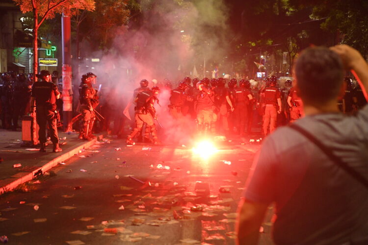 Ubrzo je došlo do žestokih sukoba, policija je intervenisala u više navrata, bacani su topovski udari, suzavac, paljene su baklje, a nekoliko demonstranata je uhapšeno.