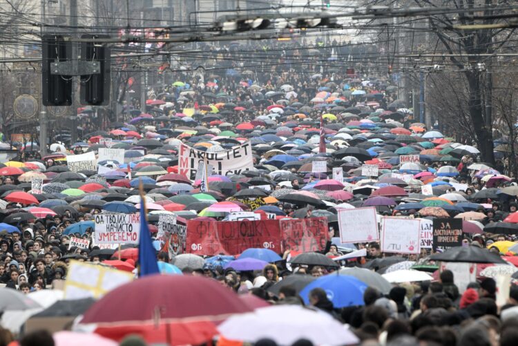 Više hiljada studenata i građana blokiralo je raskrsnicu Nemanjine i Ulice kneza Miloša ispred Vlade Srbije a kolona učesnika protesta prostirala se do raskrsnice Kneza Miloša i Trga Nikole Pašića s jedne, i od raskrsnice Nemanjine do Savskog trga s druge strane.
