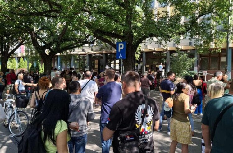 Građani i studenti okupili su se još u podne ispred zgrade novosadskog tužilaštva kako bi pružili podršku studentima i građanima koji su privedeni tokom protesta u petak.