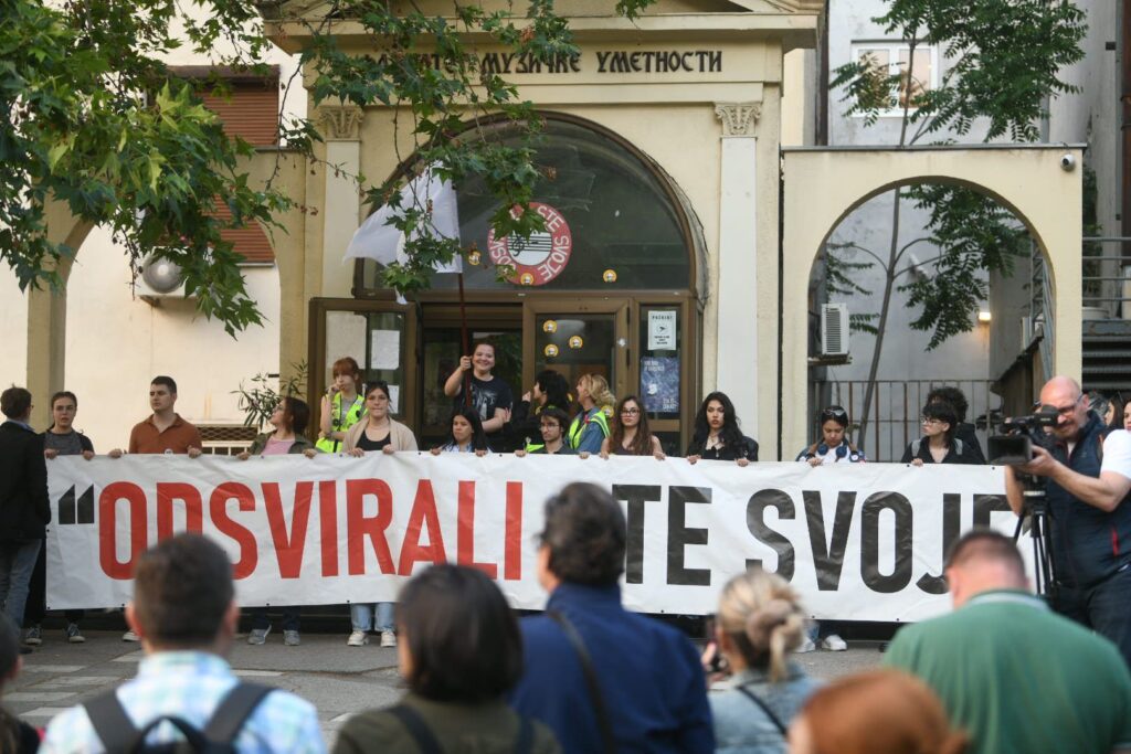 Studenti Fakulteta muzičke umetnosti u Beogradu razvili su transparent „Odsvirali ste svoje“ ispred zgrade fakulteta, a u parku Manjež okupili su se njihove kolege i građani kako bi im pružili podršku nakon jednostrane odluke veća FMU.