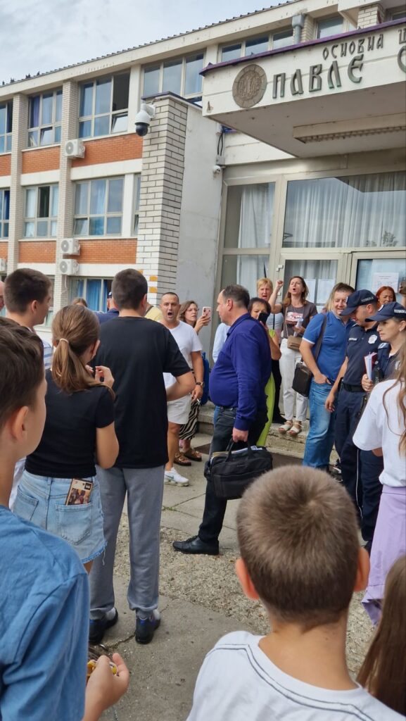 Ispred Osnovne škole "Pavle Savić" došlo je do vanredne situacije, pošto su se prethodno roditelji učenika okupili ispred zgrade škole, zahtevajući da novopostavljeni direktor, inače SNS funkcioner, ode sa tog mesta. Roditelji su, kako saznaje Nova.rs, ušli u školu, prekinuli sednicu Nastavničkog veća, dok je direktor sve vreme bio zaključan u ženskom toaletu. On je pozvao policiju koja ga je upravo izvela.