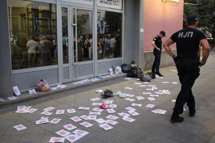 Upitali su kada će biti uklonjena platna sa zgrade u kojoj se, kako navode, nalazi sedište gradskog odbora Srpske napredne stranke, a koja su, po tvrdnjama Zelenog ustanka, postavljena bez dozvole.