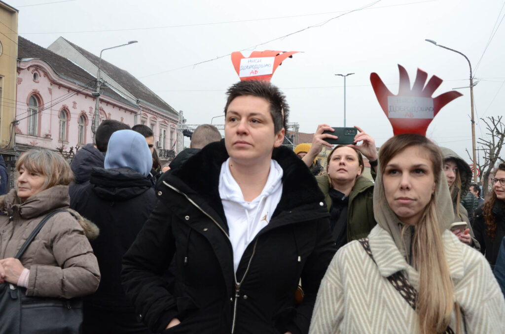 „Kao neko ko je na ovom trgu maltene od početka, od novembra meseca, svakog petka u 11.52, mogu slobodno da kažem da je ovo najbrojniji skup dosad. Znači, nikada nismo imali ovoliki odziv. Pritom, ranije nisu ni pozivani ljudi, okupljala se nas grupica građana. Onog trenutka kada su studenti krenuli da pozivaju, situacija se malo promenila. Za danas su poziv uputili udruženo studenti Pedagoškog fakulteta i parlament Gimnazije, pa mi je drago da je odziv građana bio ovako veliki, pored svih tih mladih ljudi,“ kazala je.