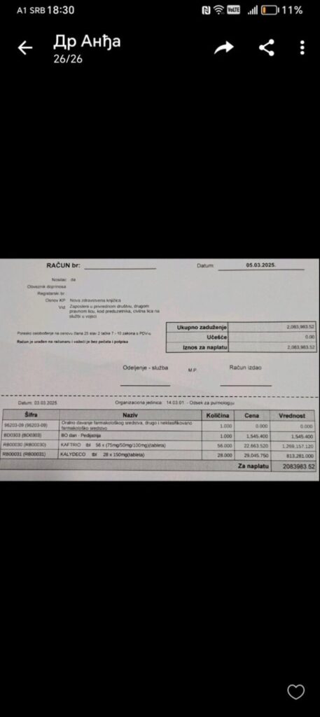 Troškovi terapije crno na belo predočeni su dokumentom u kojem je navedeno koliko koštaju lekovi i bolnički dani za male pacijente.