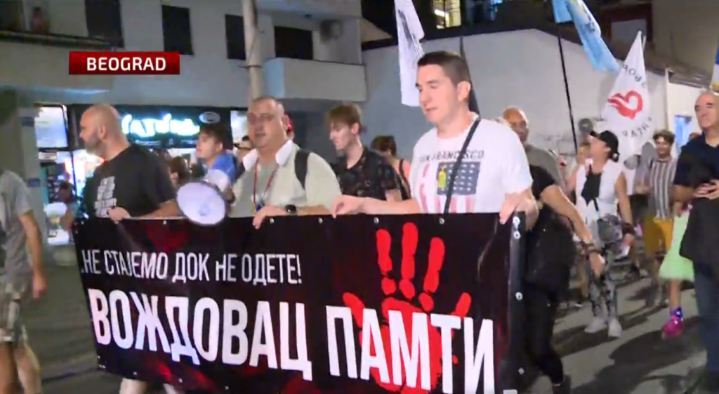 „Ne stajemo dok ne odete! Voždovac pamti“, pisalo je na velikom transparentu na početku kolone.
