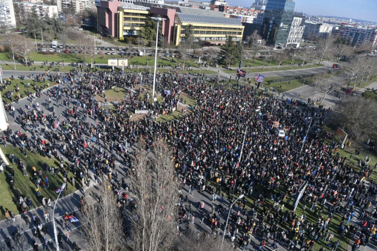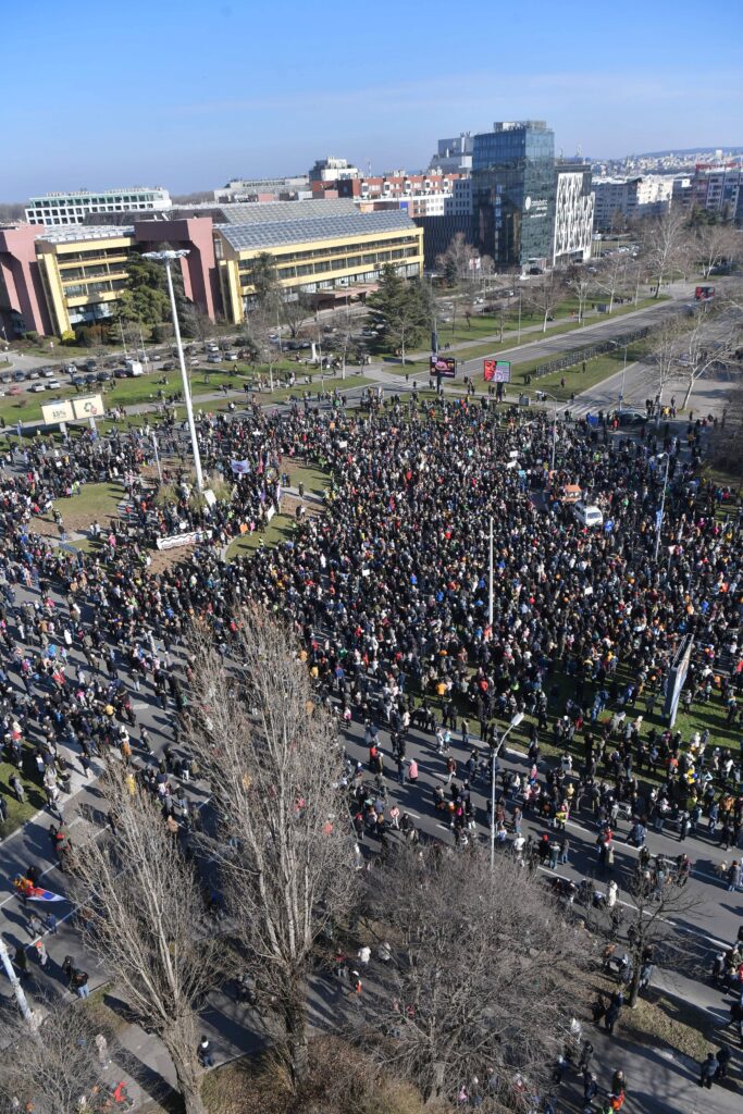 Veliki protest građana u znak podrške studentima, učenicima i prosvetarima u štrajku održava se danas na Novom Beogradu, a nakon okupljanja na raskrsnici Jurija Gagarina i Nehruove, okupljeni su krenuli u protestnu šetnju do kružnog toka kod zgrade Opštine Novi Beograd.