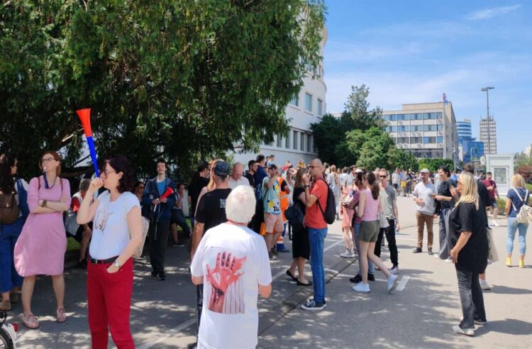 Na poziv studenata u blokadi građani su se danas okupili ispred zgrade Pokrajinske vlade, kako bi iskazali protest zbog dolaska ministra prosvete Dejana Vuka Stankovića. Okupljeni studenti i građani prave buku ispred Banovine.