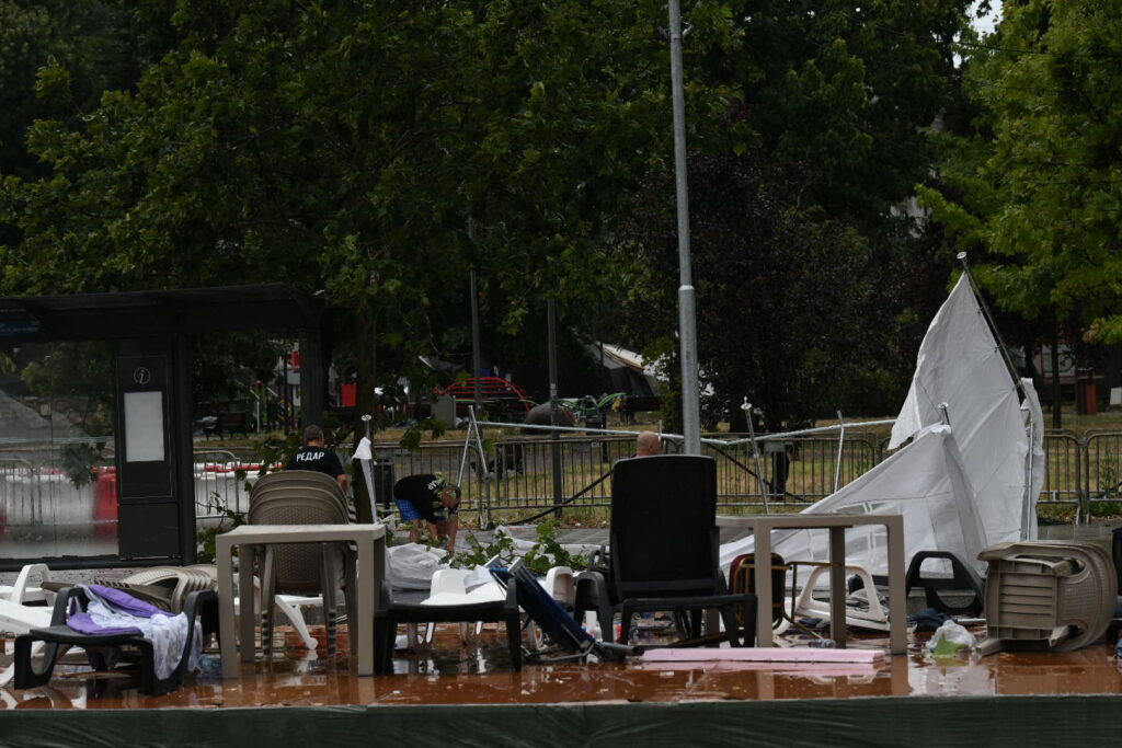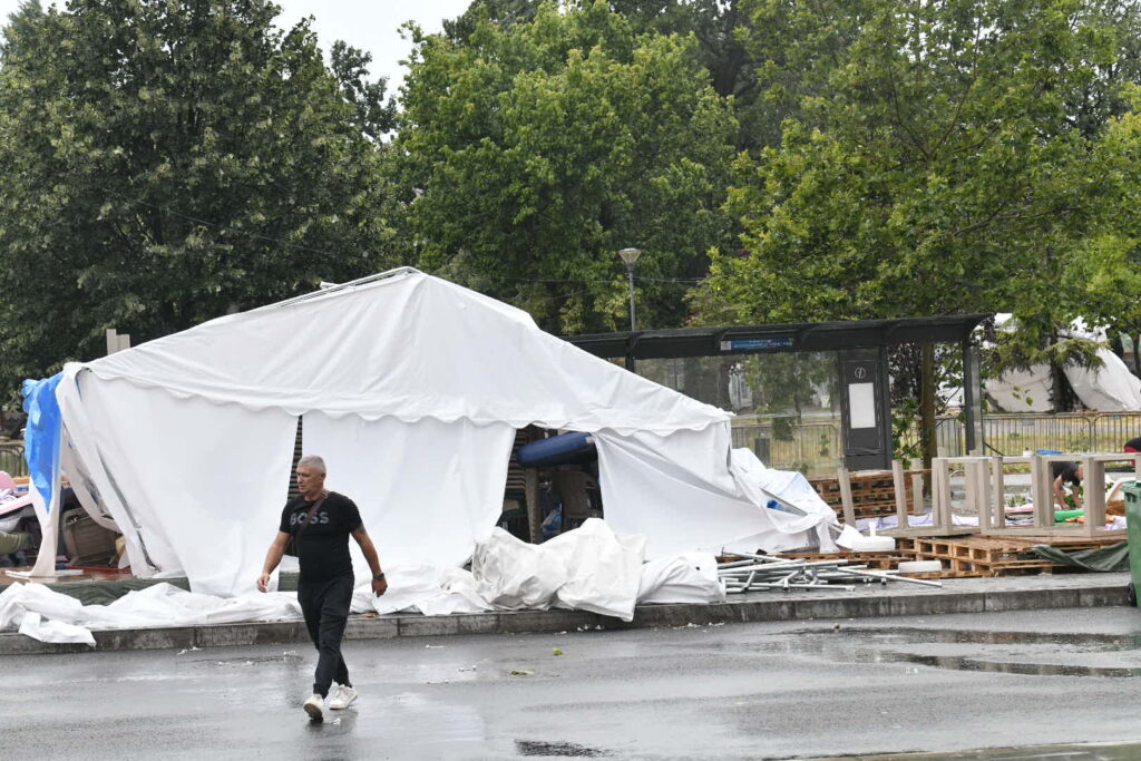 Jak vetar u Beogradu juče oduvao je mnoge šatore ispred Skupštine Srbije i u Pionirskom parku, u takozvanom „Ćacilendu“.
