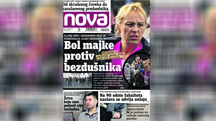 U novinama "Nova", u utorak, pročitajte: Kako je Aleksandar Vučić odigrao manevar za međunarodnu javnost - Od skrušenog do razularenog predsednika; Dijani Hrki i građanima koji je podržavaju vlast odgovara napadima; Na 90 odsto fakulteta nastava se odvija onlajn.