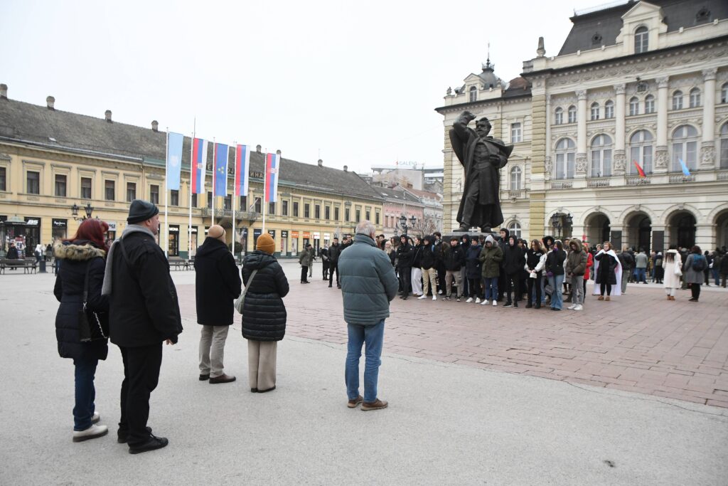Geljić ističe i da on mesecima trpi velike pritiske na poslu zbog učestvovanja na studentskim protestima, ali i u akciji „Zastani, Srbijo“ gde građani svakog petka u 11.52 tišinom odaju poštu poginulima u padu nadstrešnice Železničke stanice u Novom Sadu.