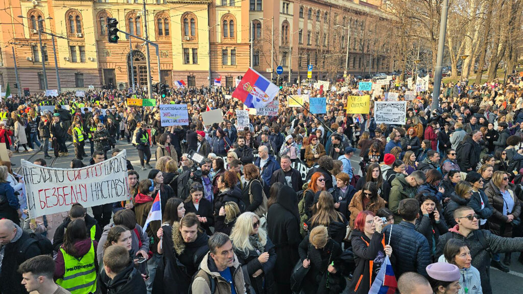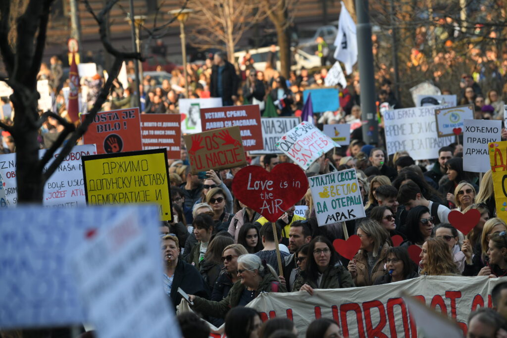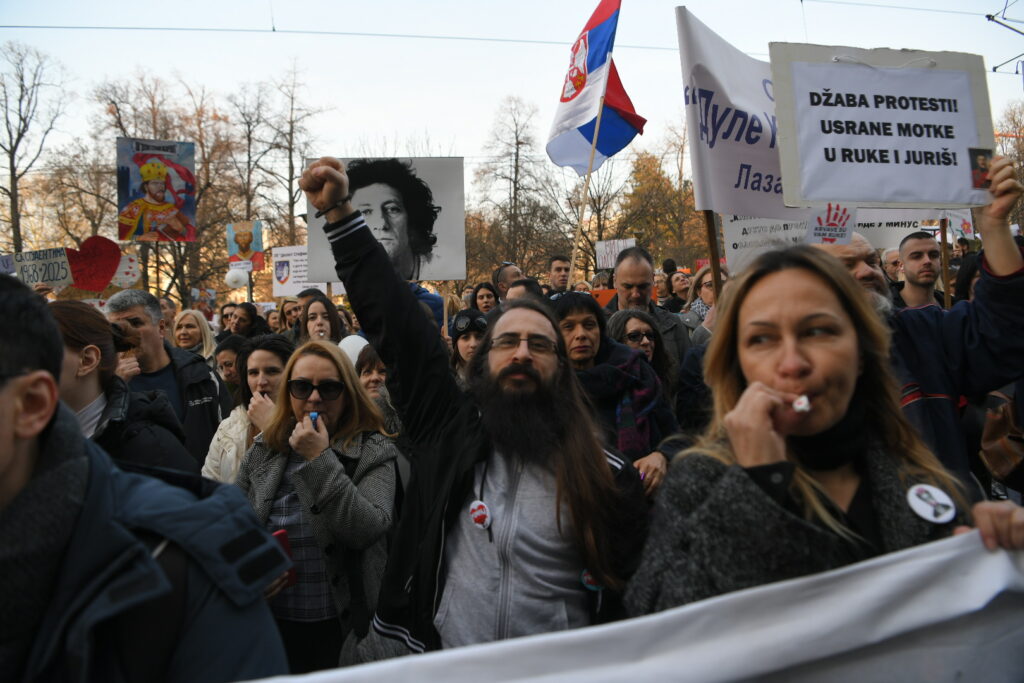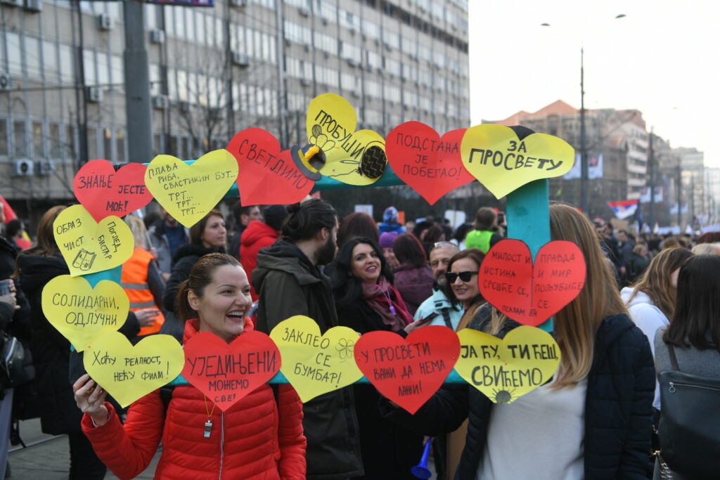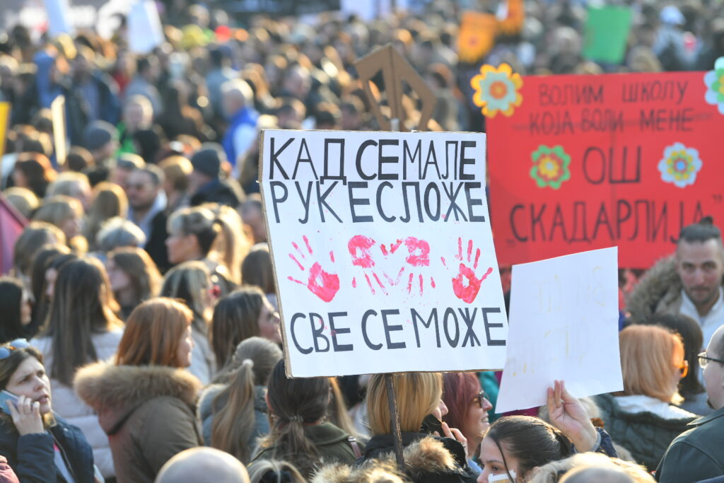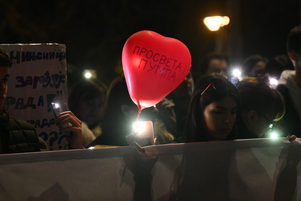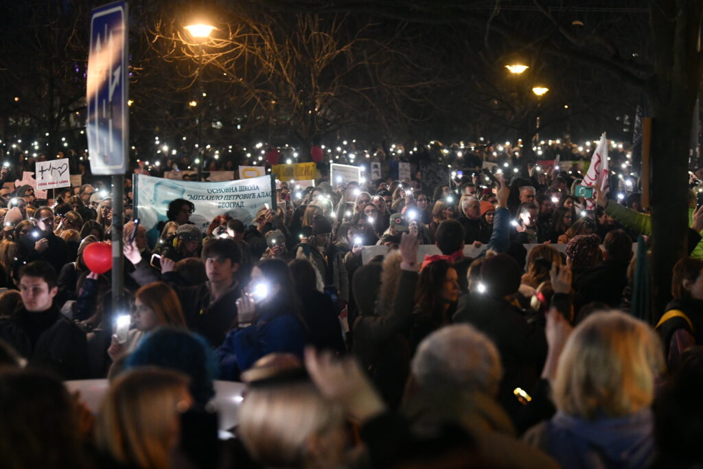 Više hiljada prosvetnih radnika, studenata, đaka i građana i dalje je okupljeno na protestu ispred Ministarstva prosvete u Beogradu sa kog su poručili da "nema predaha dok se taj resor ne probudi, shvati realnost i prihvati odgovornost".