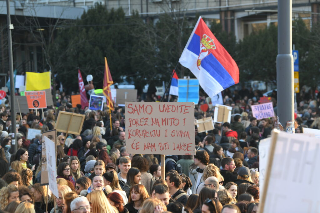 Veliki broj ljudi stigao je ispred Ministarstva prosvete, a građani još uvek pristižu. Prosvetni radnici iz različitih gradova Srbije došao je danas u Beograd. Nemanjina ulica je zatvorena, a skup će trajati do 19.00 sati.