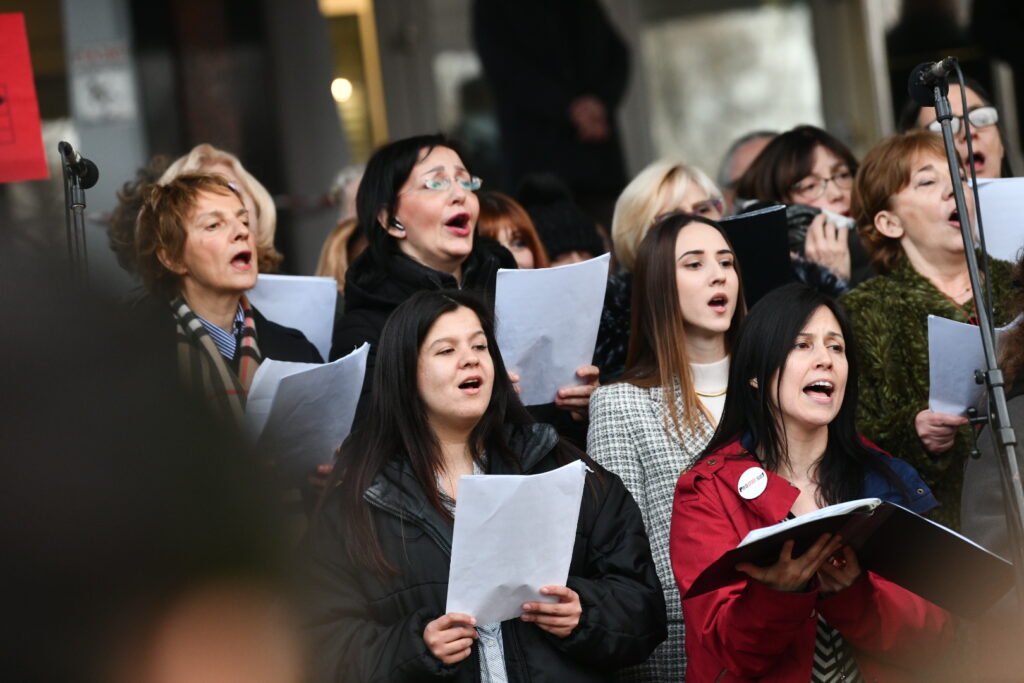 kup prosvetnih radnika u blokadi nastave, roditelja i učenika održan je večeras na Trgu Slobode u centru Subotice, nakon čega je održano i 15 minuta tišine za žrtve novosadske tragedije.
