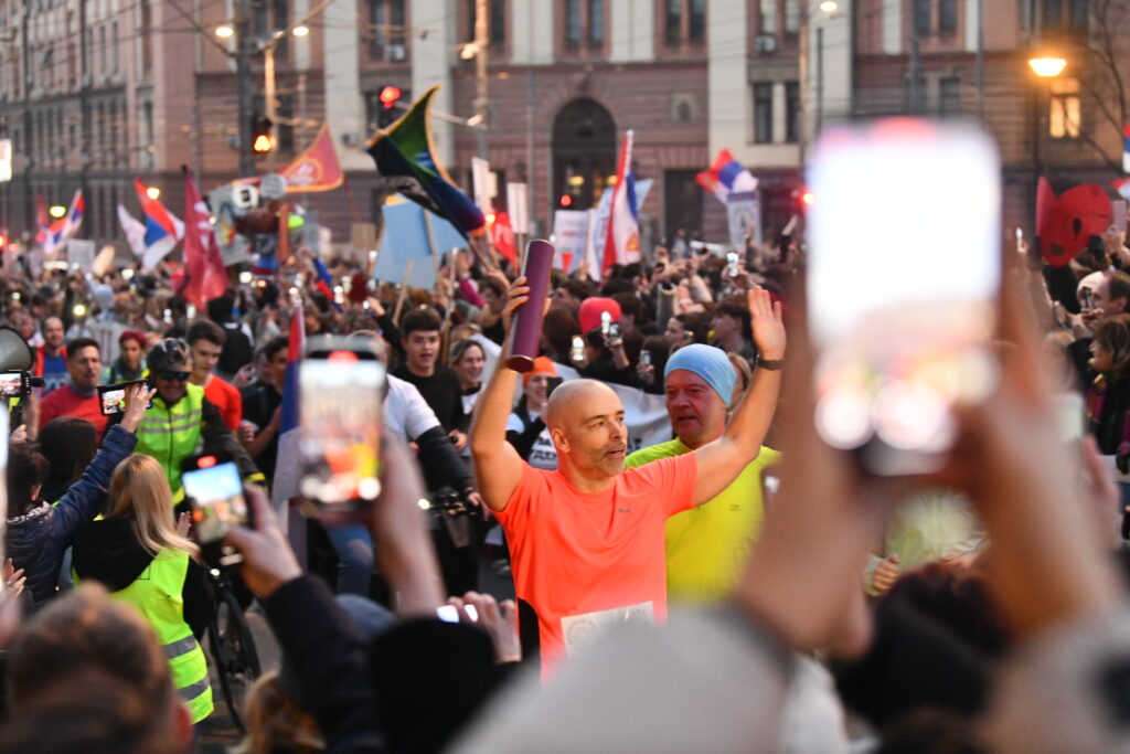 Maratonci koji su trčali iz Novog Sada stigli su ispred Ministarstva prosvete gde su se pridružili hiljadama prosvetara i građana na protestu.