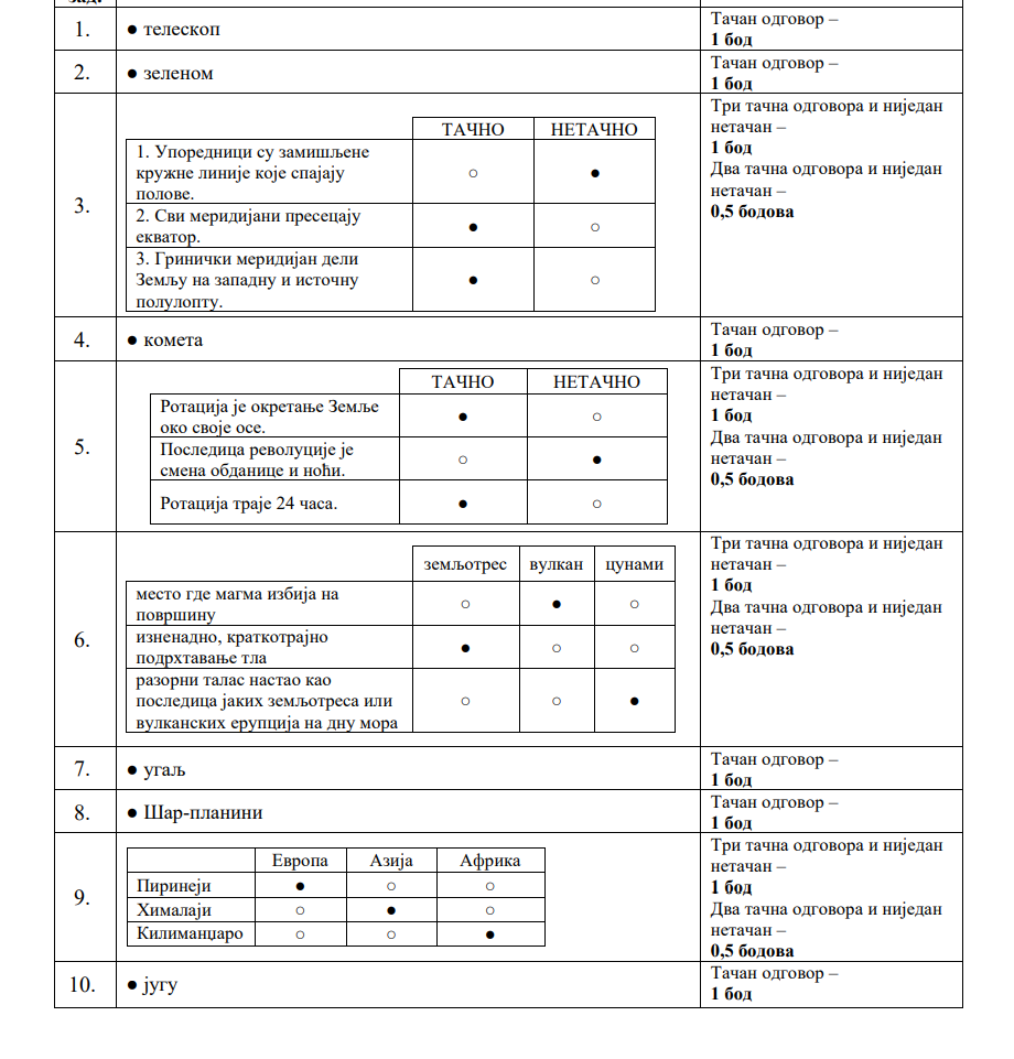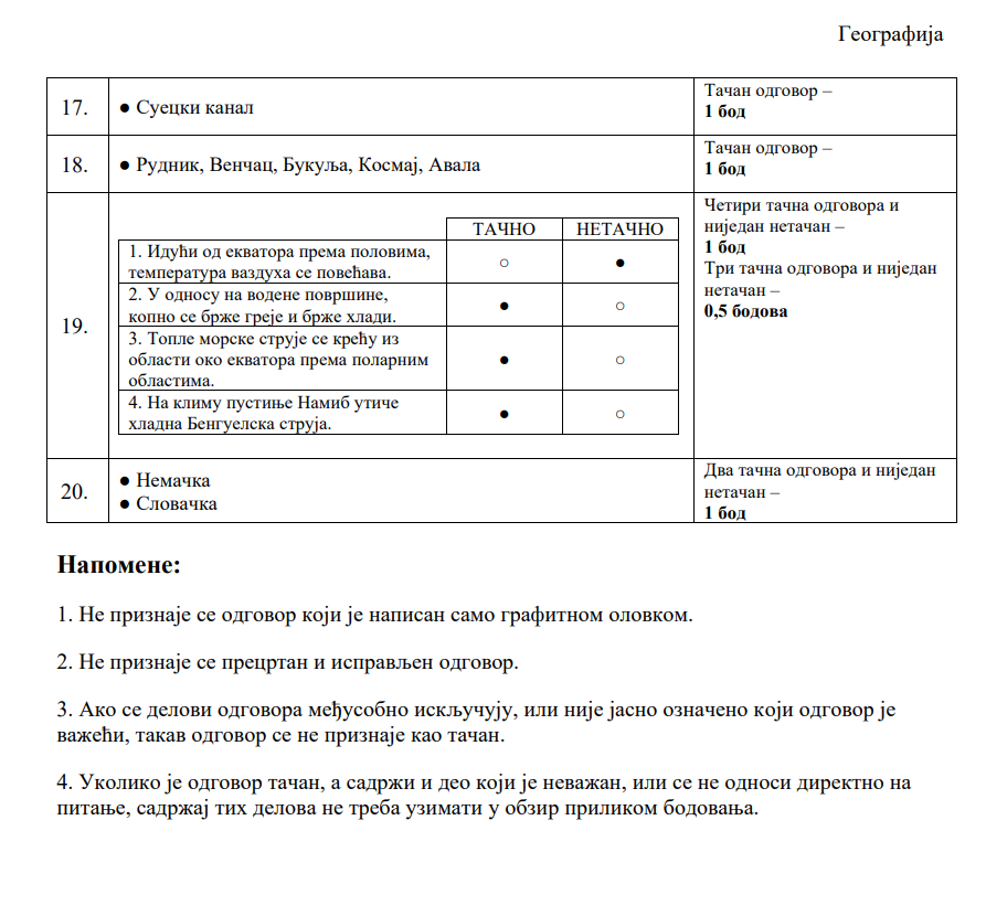 Na testu je bilo 20 pitanja, a u nastavku teksta pogledajte rešenja današnjeg testa.