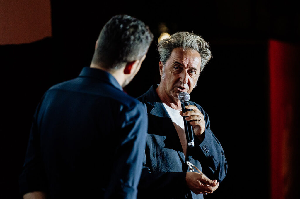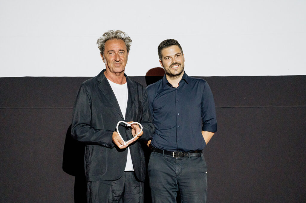 I nakon inserata iz Sorentinovih filmova, poput „Božje ruke“, „Partenope“, „Il Diva“, „One Man up“, „Velike lepote“, „MladostI“ italijanski sineasta izašao je na scenu pozdravljem velikim aplauzom. Zahvalio se na nagradi, rekavši da je počašćen, ali je odmah dodao: