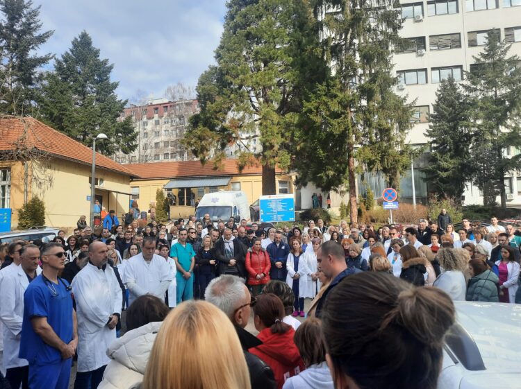 Veliki broj lekara, sestara i drugog medicinskog i nemedicinskog osoblja, spontano se danas okupio ispred Opšte bolnice Užice, u znak podrške svim studentskim zahtevima. Pridruživali su im se i pacijenti, prolaznici i svi zajedno, 15-ominutnom ćutnjom u 11:52, odali su poštu kakon novosadskim tako i žrtvama staračkog doma i svima koji su stradali u prethodnim tragedijama koje su zatekle građane, a koje su, kako su rekli, posledica države u kakvoji žive.