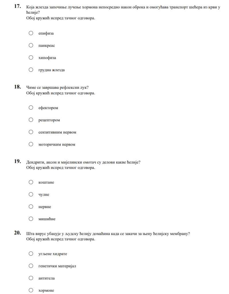 Na testu iz biologije učenici su imali 20 pitanja, a u nastavku teksta pogledajte kako je izgledao test.