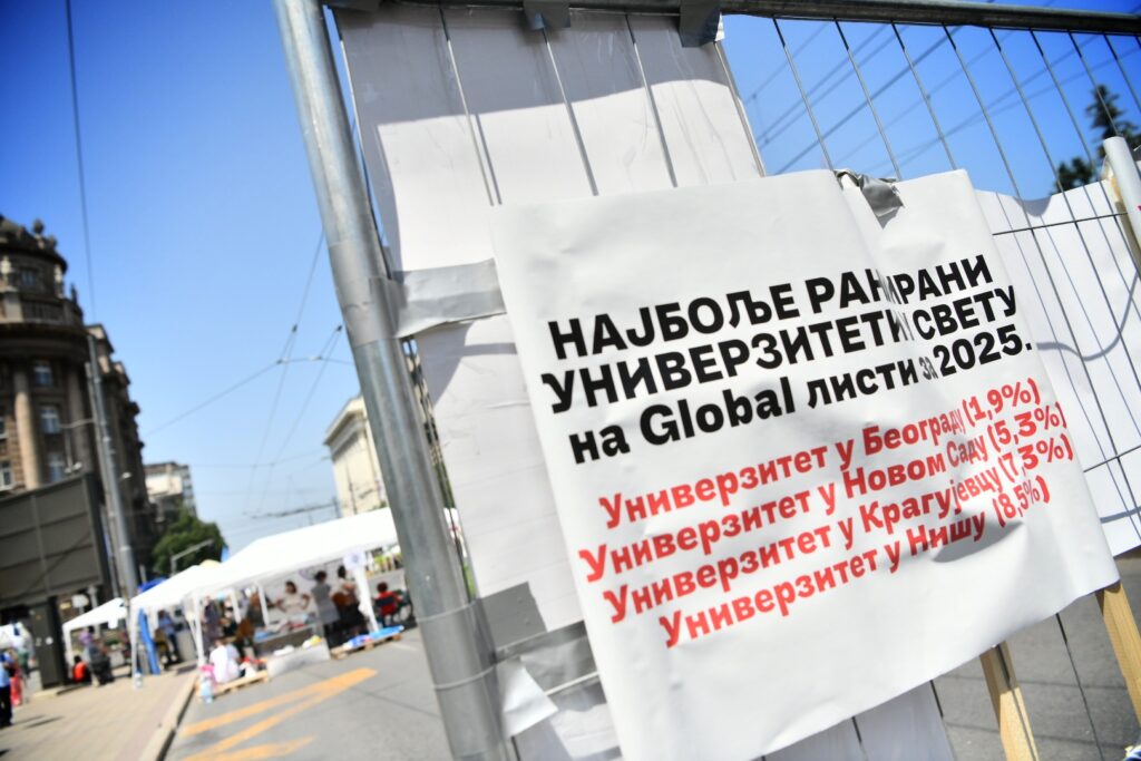Članovi akademske zajednice, koji su deo „Pobunjenog univerziteta“, studenti u blokadi i građani koji ih podržavaju, prošle nedelje postavili su šatore i ogradu sa svih strana raskrsnice, a saobraćaj u dve ulice i dalje je u prekidu, osim za vozila hitne službe. Naime, posle ispunjenja prvog zahteva o rasformiranju Radne grupe za izmene Zakona o visokom obrazovanju, „Pobnjeni univerzitet“ čeka i da se ukine Uredba o standardima rada univerziteta, kao i da se do kraja juna odobre budžetske kvote za upis na fakultete.