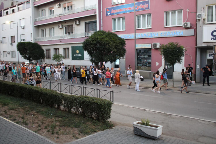 Okupljeni su započeli šetnju na Gradskom trgu, a kolona je prošla pored zgrade lokalne samouprave.