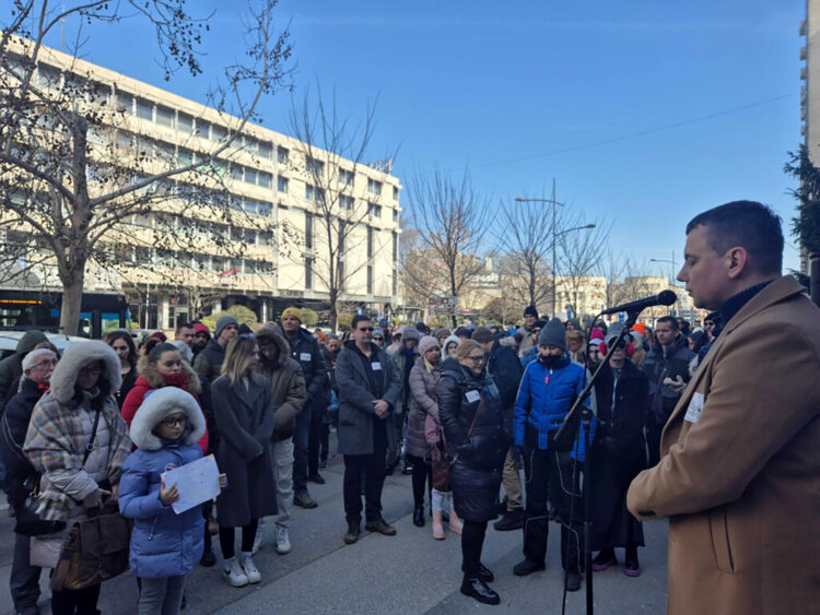 Protest roditelja i nastavnika ispred Školske uprave, protiv zastrašivanja i diskriminacije „I ja sam Predrag“ – Roditeljska solidarnost, počeo je danas na Bulevar Mihajla Pupina u Novom Sadu.