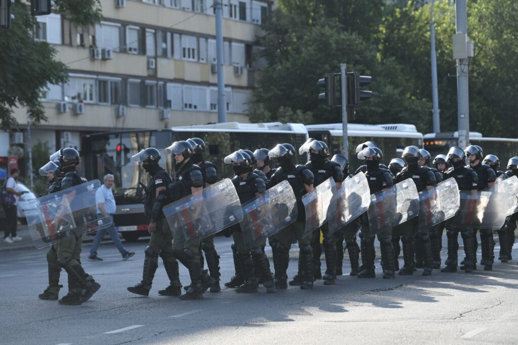 Preko puta Trga republike prisutno je više desetina pripadnika Žandarmerije kao i nekoliko marica i policijaskih vozila.