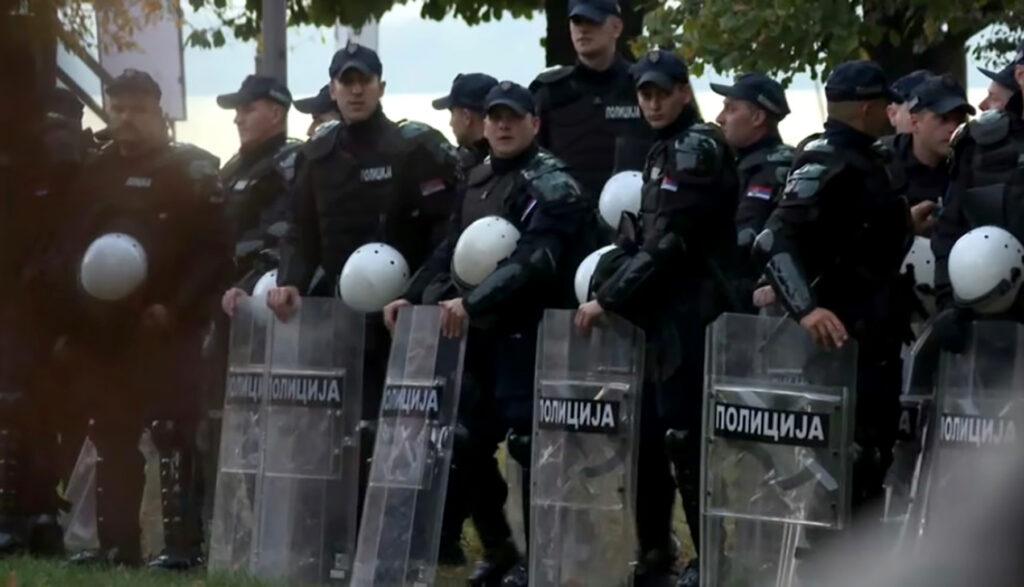„Idite na Kosovo“, vikali su okupljeni policiji koja ih je gurala do pruge. Kako je javila reporterka N1, do incidenta je došlo kada je vođa pokreta „Tvrđava“ Nikola Krstić najavio da će on svojim alatom simbolično krenuti da demontira nelegalnu prugu. Njega su zatim priveli, a prethodno su priveli još jednog aktivistu ovog pokreta.