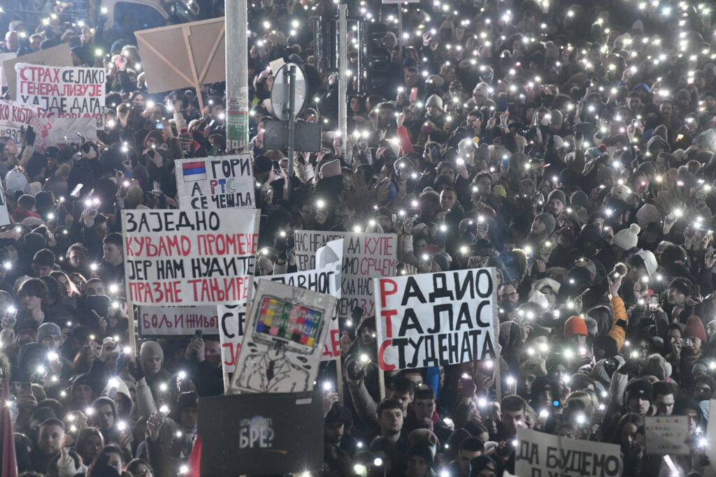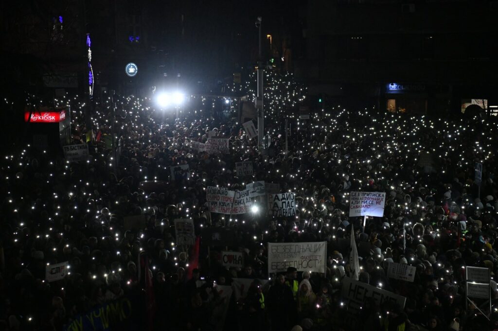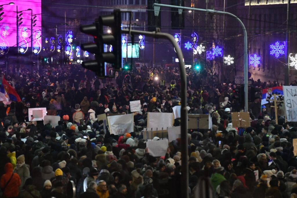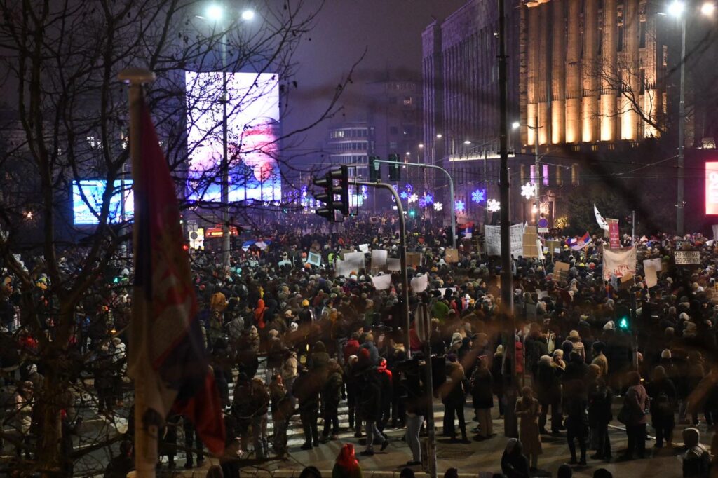 Protest je završen pevanjem državne himne „Bože pravde“ nakon čega su studenti počeli da se vraćaju na svoje fakultete koje drže u blokadama.