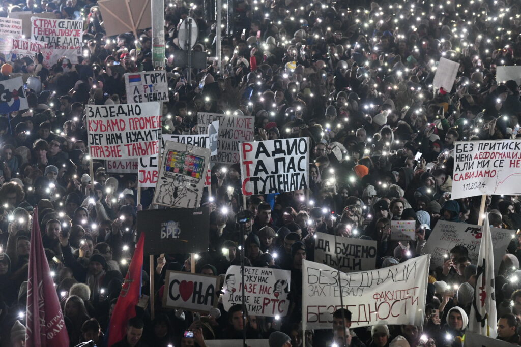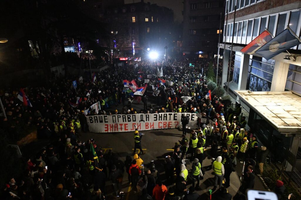 Veliki broj građana i studenata okupio se večeras ispred zgrade Radio-televizije Srbije na studentskom protestu pod nazivom "Naše pravo da znamo sve". Uz 15 minuta tišine i bljesak svetala okupljeni simbolično razbijaju medijski mrak, stvarajući veličanstvenu sliku jedinstva građana i studenata. Cilj protesta ispred RTS-a je da studenti još jednom skrenu pažnju na neadekvatno izveštavanje ovog javnog medijskog servisa. Sve najnovije informacije pratite u našem BLOGU UŽIVO.